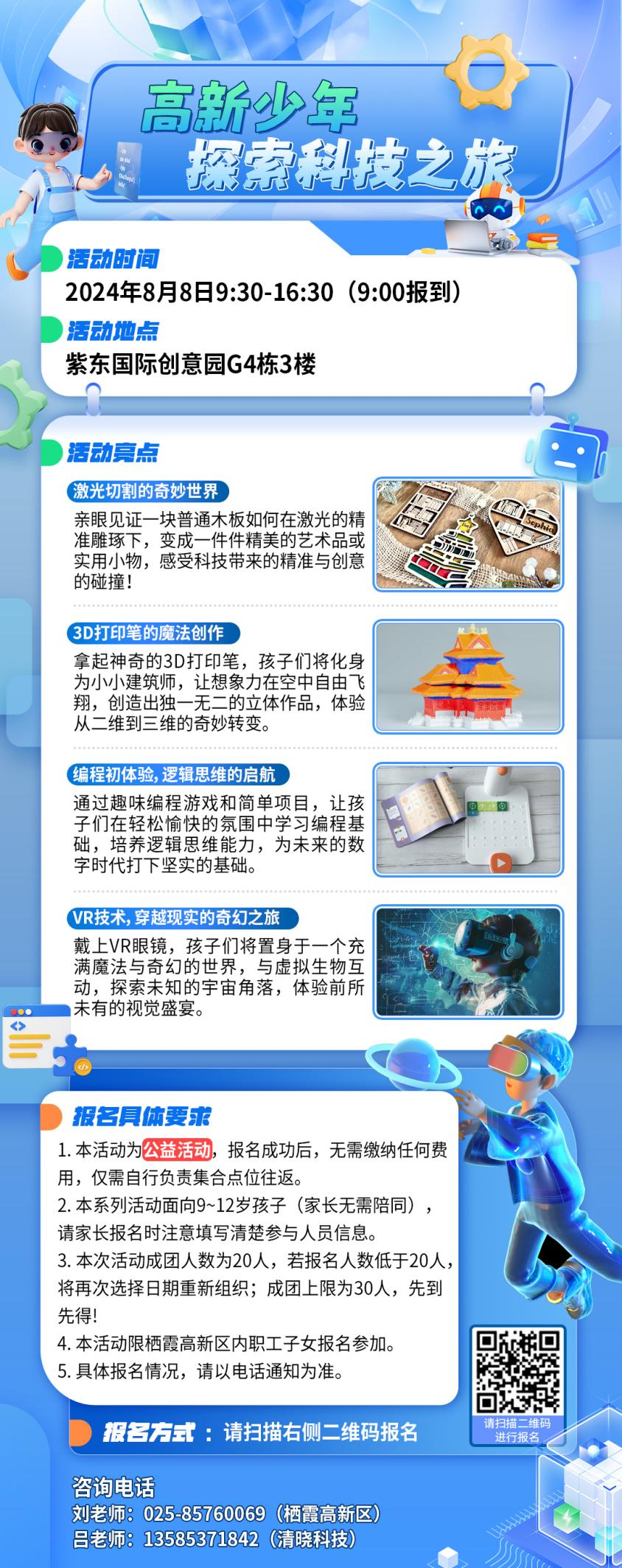 在這個充滿無限可能的時代,科技正以前所未有的速度改變著我們的生活。為豐富高新區(qū)企業(yè)職工子女的暑期生活,在寓教于樂中感受科技的魅力,棲霞高新區(qū)關(guān)工委聯(lián)合南京清曉信息科技有限公司精心籌備了一場別開生面的“科技體驗一日研學活動”!