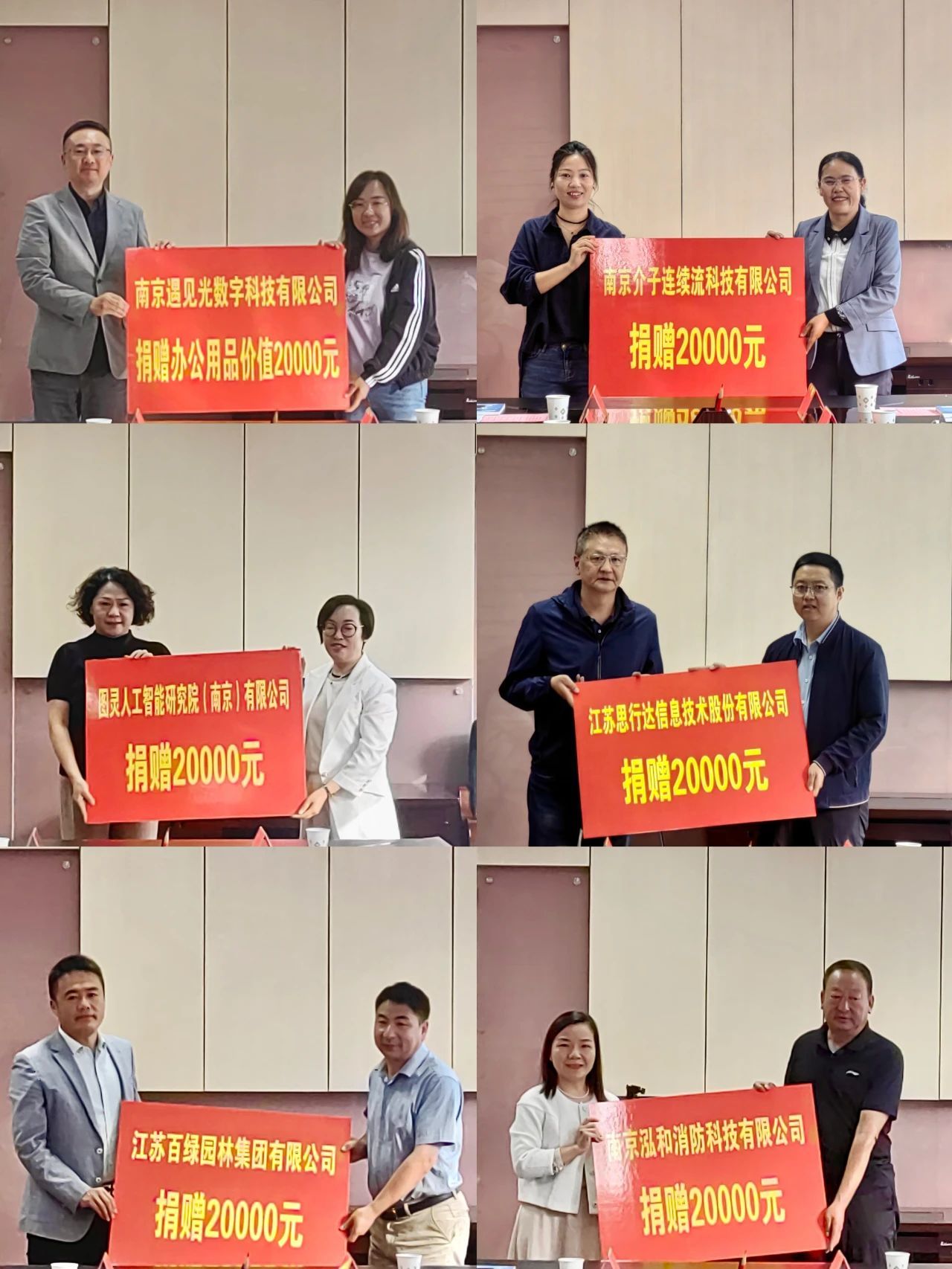 南京遇見光數(shù)字科技有限公司、江蘇思行達信息技術股份有限公司、南京介子連續(xù)流科技有限公司、南京泓和消防科技有限公司、江蘇百綠園林集團有限公司、圖靈人工智能研究院(南京)有限公司向湟中區(qū)捐贈2萬元辦公用品和10萬元資金,為湟中區(qū)教育教學、困難學生救助、美麗鄉(xiāng)村建設等提供支持。湟中區(qū)為6家愛心企業(yè)頒發(fā)捐贈證書。