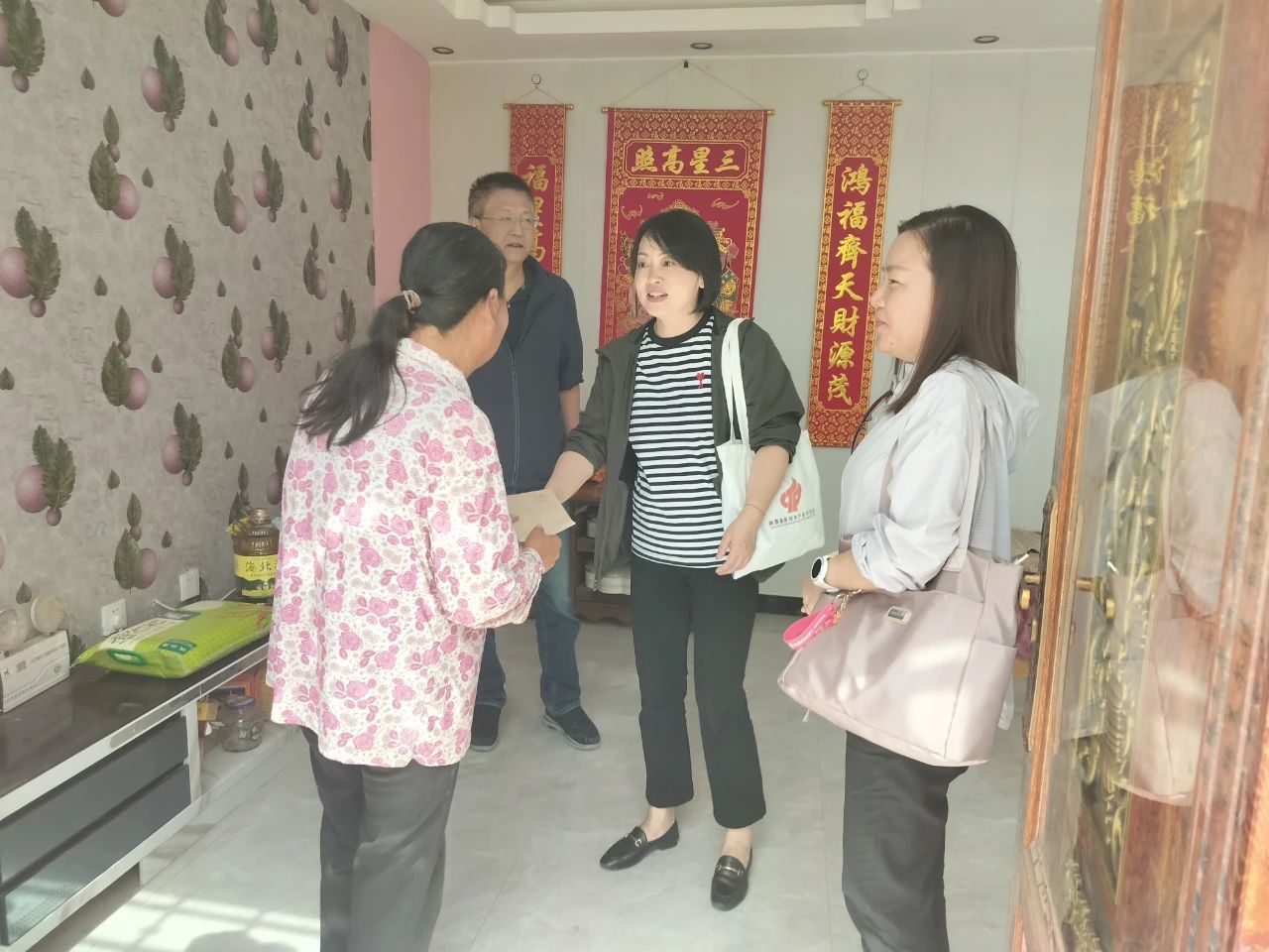 考察組一行來到群加鄉(xiāng)脫貧群眾家中,關切詢問他們的家庭生活情況、身體健康狀況、子女上學就業(yè)情況等,并為他們送上米、面、油等慰問品。