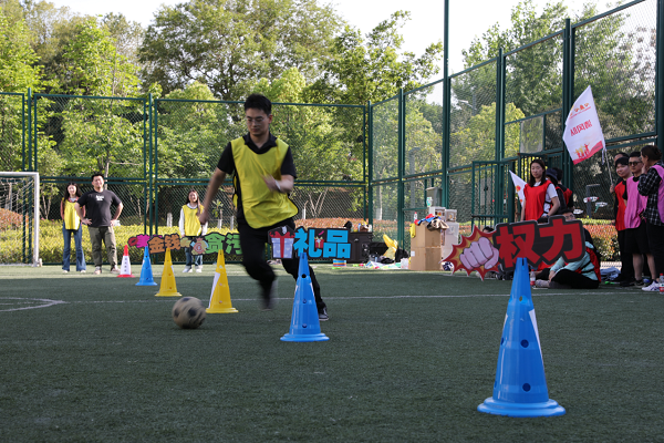 賽道設(shè)置模擬誘惑障礙,參賽者帶球繞行,以足球?yàn)?ldquo;廉心”,在規(guī)避誘惑中穩(wěn)步行進(jìn),用專注與定力詮釋清廉底色,讓廉潔之風(fēng)隨滾動(dòng)的足球蔓延全場(chǎng)。