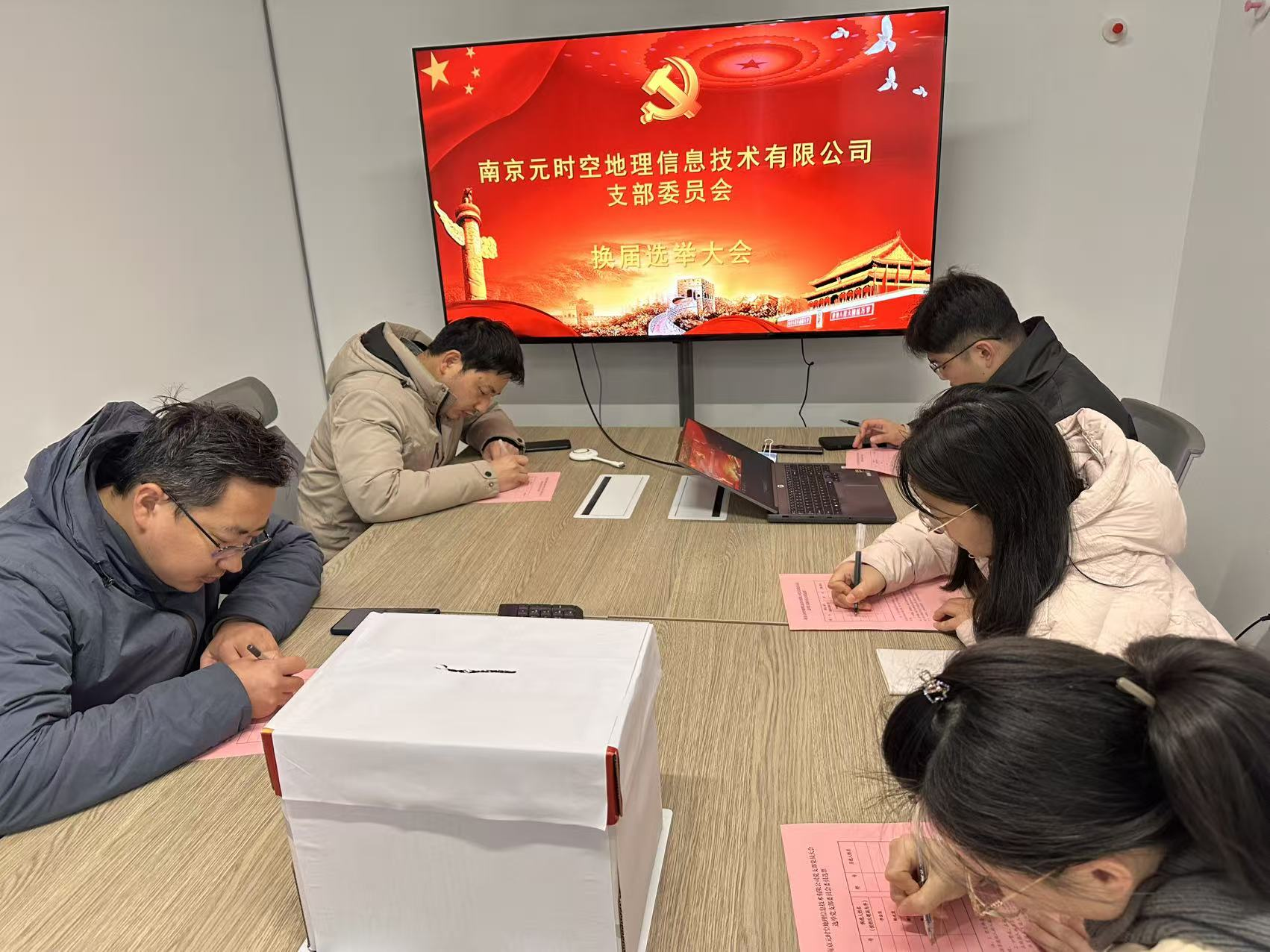 南京元時(shí)空地理信息技術(shù)有限公司黨支部:徐文祥當(dāng)選為書記,李金良任組織委員兼紀(jì)檢委員,顧萍萍任宣傳委員。