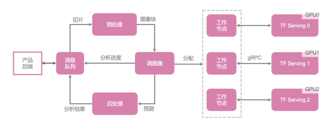 透徹影像擁有業(yè)內(nèi)先進(jìn)的分布式微服務(wù)推理系統(tǒng),能夠?qū)㈩A(yù)測任務(wù)分配到集群中所有的GPU進(jìn)行并行計算,大幅提高數(shù)字病理切片預(yù)測的速度。
