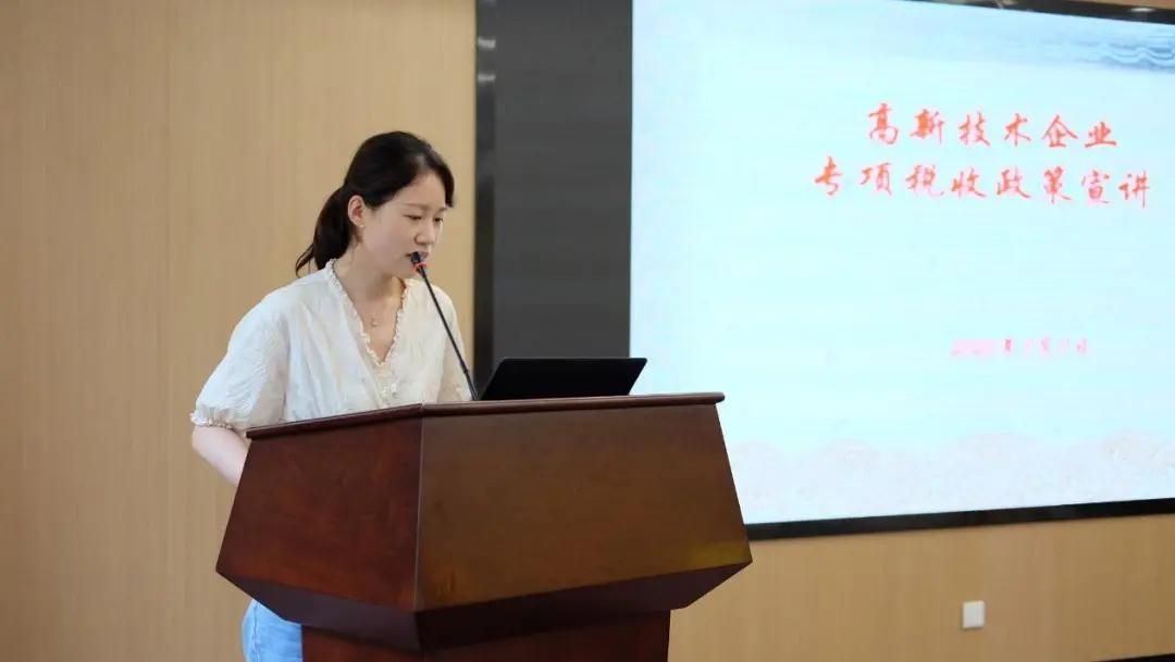 隨后,棲霞區(qū)稅務(wù)局法規(guī)科陳晨為企業(yè)講解了科技項目申報中財稅方面的知識及企業(yè)在高企稅審環(huán)節(jié)的注意要點。