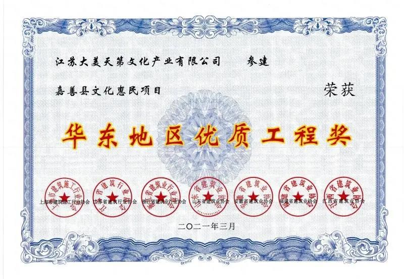在大美天第十多載歷程中,深耕精筑文化領(lǐng)域,贏得了諸多國家、省、市多層級、全方位褒獎。2021年收官在即,大美天第本年度依舊碩果累累,以極大的美譽度、信任度贏得了行業(yè)和客戶的認可,品牌形象、品牌效應全力彰顯。