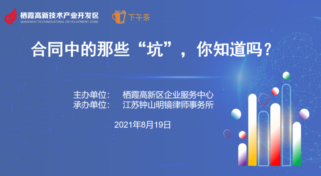 為幫助企業(yè)避免合同法律風(fēng)險,保障公司合法利益不受潛在風(fēng)險威脅,棲霞高新區(qū)聯(lián)合江蘇鐘山明鏡律師事務(wù)所開展“合同中的那些‘坑’”線上法律培訓(xùn)會,本次活動吸引了40余名企業(yè)負(fù)責(zé)人線上觀看。