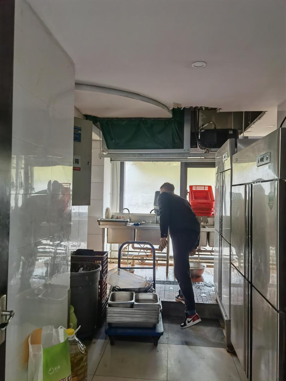 園區(qū)組織應急搶險,搶險滅火小組全副武裝趕赴現(xiàn)場,使用消防水帶、水槍等裝備對著火處實施打擊,移走廚房內(nèi)可燃物,切斷二層供電。