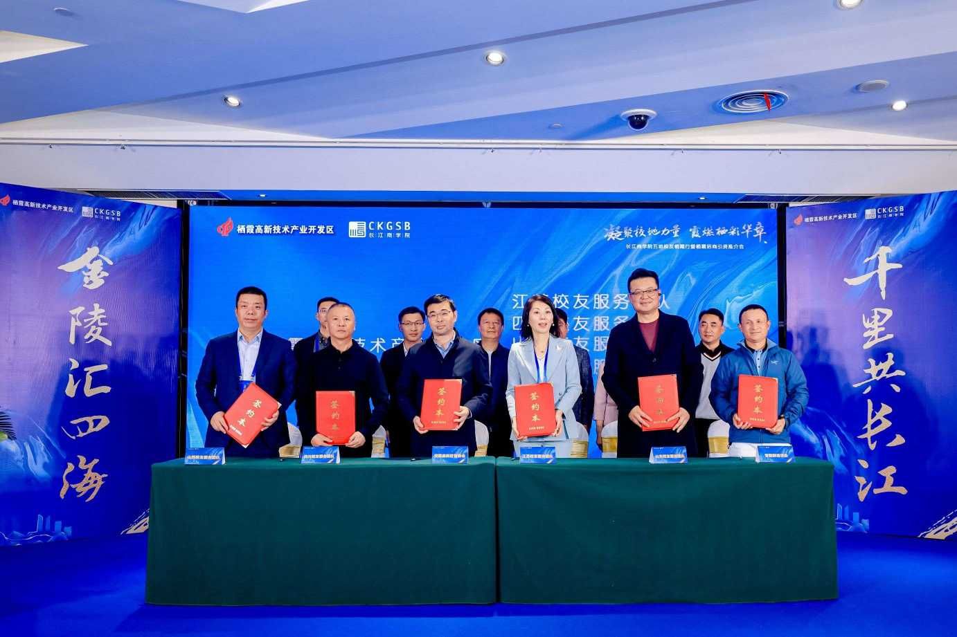 棲霞高新區(qū)管委會主任黃斌代表高新區(qū)與長江商學院五地校友服務團隊簽訂戰(zhàn)略合作協(xié)議,正式開通雙向綠色合作通道,以“校友力”牽引“感情資源”入注,以“校友圈”加持“產(chǎn)業(yè)群”集聚。棲霞區(qū)政府副區(qū)長楊棟,江蘇校友服務團隊、四川校友服務團隊、山東校友服務團隊、山西校友服務團隊、智能制造學會五地校友會長共同見證簽約。