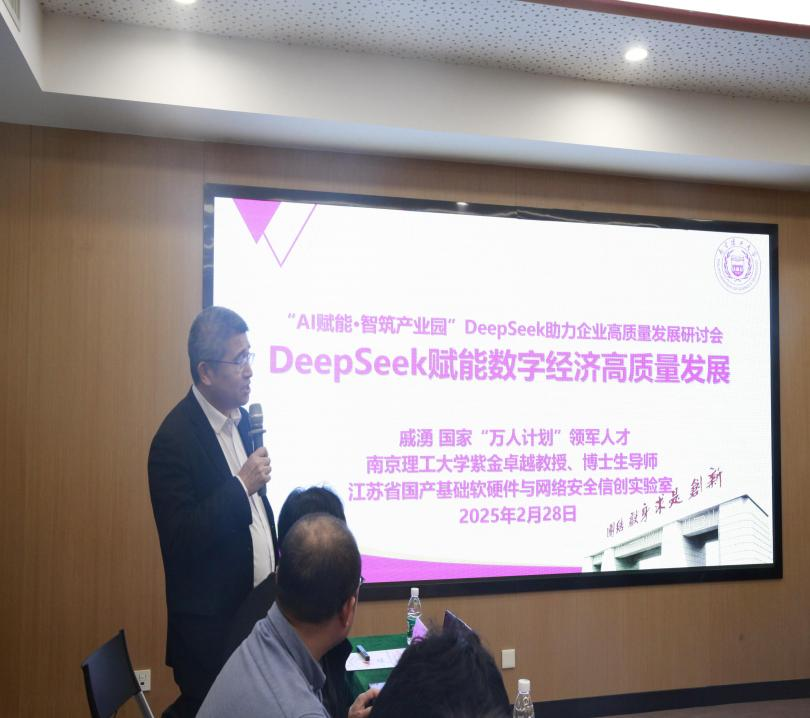 2月28日,一場(chǎng)聚焦人工智能前沿技術(shù)的盛會(huì)——“AI賦能·智筑產(chǎn)業(yè)園”DeepSeek助力企業(yè)發(fā)展研討會(huì)在棲霞高新區(qū)紫東國(guó)際創(chuàng)意園成功舉辦。棲霞區(qū)區(qū)委常委、副區(qū)長(zhǎng)劉海濱,江蘇省互聯(lián)網(wǎng)協(xié)會(huì)常務(wù)副會(huì)長(zhǎng)陳夏初,省互聯(lián)網(wǎng)聯(lián)合會(huì)常務(wù)副會(huì)長(zhǎng)杜家雷,江蘇省委網(wǎng)信辦信息化發(fā)展處處長(zhǎng)陳輝,江蘇省工信廳大數(shù)據(jù)產(chǎn)業(yè)處副處長(zhǎng)趙峰,棲霞區(qū)工信局局長(zhǎng)余蓉,棲霞高新產(chǎn)業(yè)集團(tuán)黨委委員、書(shū)記、董事長(zhǎng)王永鎏,棲霞區(qū)委網(wǎng)信辦副主任錢(qián)學(xué)進(jìn)等出席活動(dòng)。來(lái)自高校院所的人工智能領(lǐng)域?qū)W者,以及華為、阿里、騰訊等領(lǐng)軍企業(yè)代表共90余人參加活動(dòng),共同探討人工智能技術(shù)的最新進(jìn)展及其在推動(dòng)園區(qū)、企業(yè)高質(zhì)量發(fā)展中的重要作用。