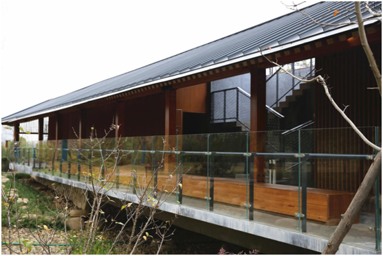 在公廁的功能設(shè)計上,園區(qū)還進(jìn)行了多種休閑功能的外延拓展,不滿足于單純的如廁需求,在廊橋游步道以東,還專門設(shè)計了一個階梯式的觀景空間,給人在漫步、健身之余提供一處休息、觀景之所,同時也是一個臨時性的小型研討、交流的場所。