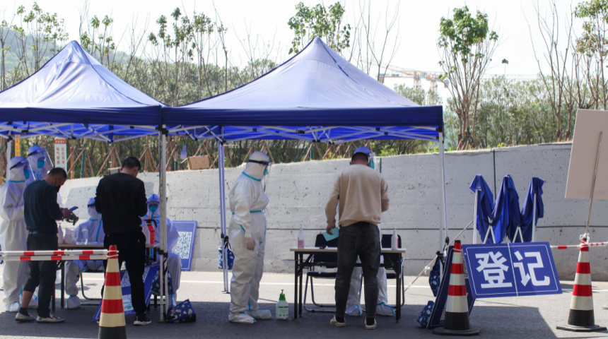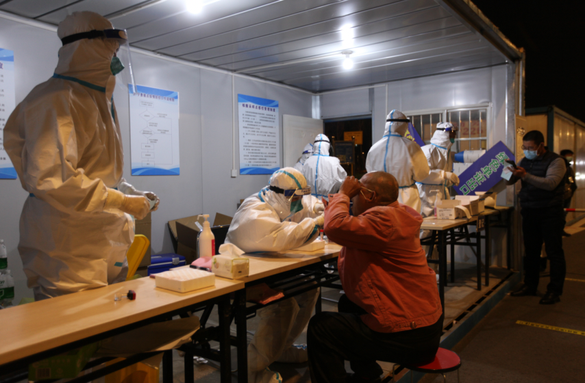 “我們耐心一點(diǎn),謹(jǐn)慎一點(diǎn),風(fēng)險(xiǎn)就會小很多。”孫維志邊登記人員信息邊說。“我們在登記后還會進(jìn)行核酸+抗原檢測,以便更早、更主動、更快速地發(fā)現(xiàn)可疑感染者”,孔令鵬補(bǔ)充道。“我們每天至少要工作8個(gè)小時(shí),有的同事要持續(xù)工作十幾個(gè)小時(shí)。常常一個(gè)班下來,臉上就會被勒出一道道深深的痕跡,聲音沙啞到說不出話,但第二天大家又都會精神抖擻”,過亞中用有力而嘶啞的聲音說道。