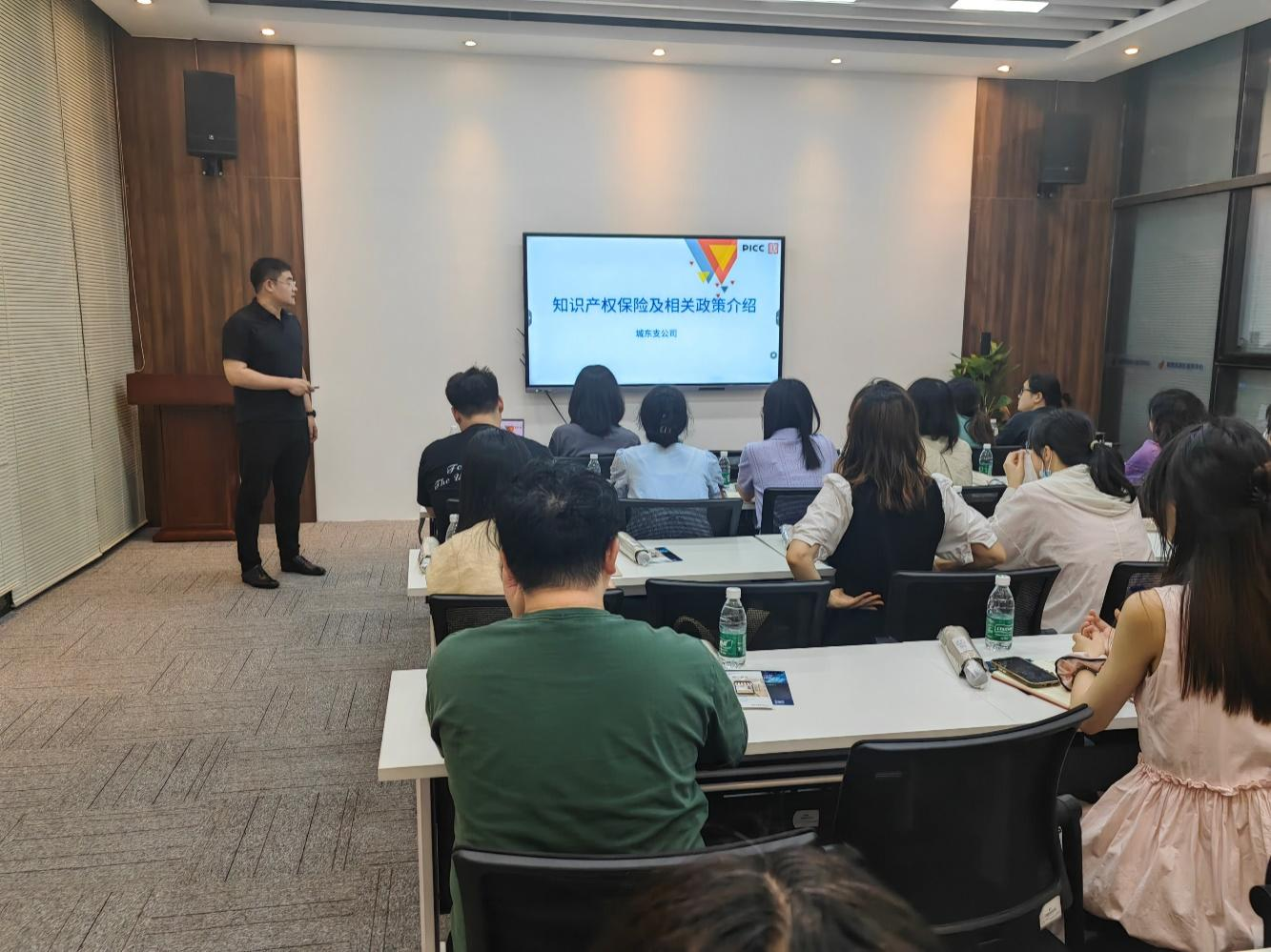 楊陽(yáng)重點(diǎn)介紹了專利申請(qǐng)費(fèi)用補(bǔ)償、專利執(zhí)行和專利被侵權(quán)損失三項(xiàng)核心保險(xiǎn)產(chǎn)品,為企業(yè)分擔(dān)專利申請(qǐng)駁回、專利侵權(quán)和被侵權(quán)風(fēng)險(xiǎn),幫助企業(yè)更好地在生產(chǎn)經(jīng)營(yíng)中保護(hù)自身知識(shí)產(chǎn)權(quán)權(quán)益、抵御知識(shí)產(chǎn)權(quán)風(fēng)險(xiǎn)。會(huì)后,參會(huì)企業(yè)就保險(xiǎn)產(chǎn)品購(gòu)買、理賠、使用范圍等積極與培訓(xùn)老師交流、討論。