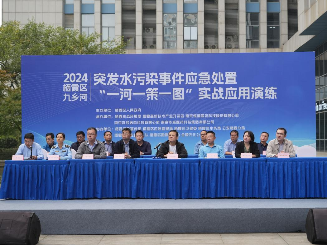 10月15日,由棲霞區(qū)人民政府主辦,棲霞生態(tài)環(huán)境局、棲霞高新技術(shù)產(chǎn)業(yè)開發(fā)區(qū)、南京恒道醫(yī)藥科技股份有限公司、南京漢欣醫(yī)藥科技有限公司、南京華威醫(yī)藥科技集團有限公司承辦的2024年棲霞區(qū)九鄉(xiāng)河突發(fā)水污染事件應急處置“一河一策一圖”實戰(zhàn)應用演練在江蘇生命科技創(chuàng)新園舉行。南京市生態(tài)環(huán)境局、棲霞區(qū)委宣傳部、區(qū)應急管理局、生態(tài)環(huán)境局、消防救援大隊、衛(wèi)健委、水務局、金陵石化、生命科技園重點監(jiān)管企業(yè)等相關(guān)單位領(lǐng)導、企業(yè)負責人現(xiàn)場觀摩。