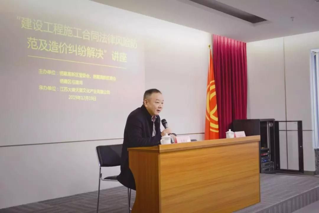 為了幫助企業(yè)做好建筑工程領域的合同管理及造價管控,棲霞高新技術產(chǎn)業(yè)開發(fā)區(qū)管委會、棲霞高新技術產(chǎn)業(yè)開發(fā)區(qū)商會、棲霞區(qū)住建局和江蘇大美天第文化產(chǎn)業(yè)有限公司于12月19日下午聯(lián)合舉辦了“建設工程施工合同法律風險防范及造價糾紛解決”講座。出席本次活動的有棲霞高新區(qū)管委會主任吳丹、棲霞高新區(qū)企業(yè)服務處處長蔣尚平、棲霞區(qū)住建局副局長米強、法制科負責人方圓、江蘇大美天第文化產(chǎn)業(yè)有限公司負責人,受邀參加今天培訓活動的還有棲霞高新區(qū)相關企事業(yè)代表及大美天第部分工作人員,共50余人。