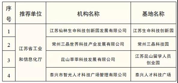 江蘇省入選2020年度國家小型微型企業(yè)創(chuàng)業(yè)創(chuàng)新示范基地名單
