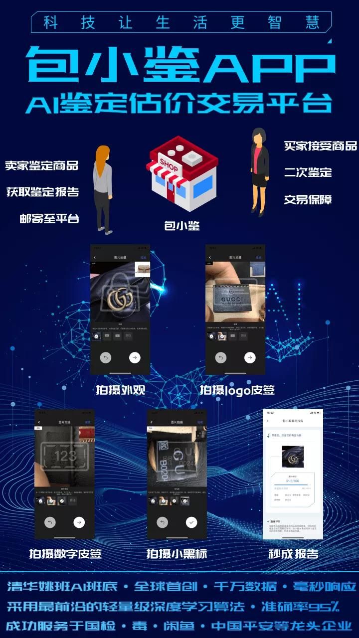 “包小鑒”APP免費對公眾開放使用,鑒定能力強大,使用起來也非常簡單。用戶只需按照要求拍攝待鑒定物品的若干照片,上傳“包小鑒”軟件,幾秒內便能獲取鑒定報告,辨別真假。除了極速篩查真?zhèn)危?ldquo;包小鑒”還針對商品流通的關鍵環(huán)節(jié)研究出了安全高效的技術解決方案。例如AI成色、AI估價、“數字指紋”區(qū)塊鏈等,這些功能將會盡快在實際交易、流通場景中落地應用,不僅將帶來人力的解放、成本的降低,更能使效率得到指數級提升。