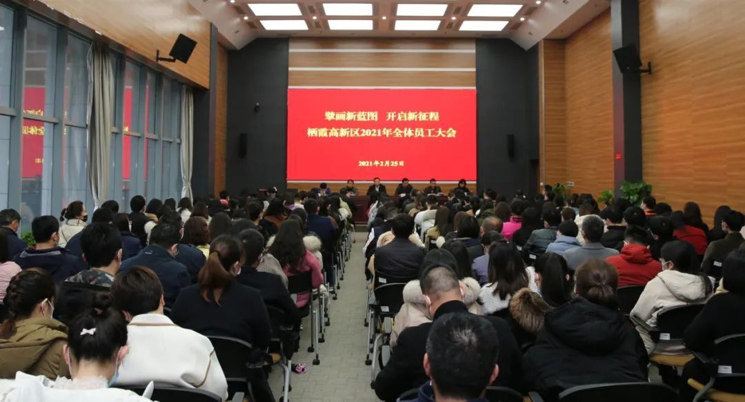 風(fēng)勁帆懸正可期,重任千鈞再奮蹄。2月25日,棲霞高新區(qū)召開“擘畫新藍(lán)圖 開啟新征程”2021年全體員工大會(huì),號召園區(qū)上下爭先進(jìn)位實(shí)現(xiàn)跨越式發(fā)展,為爭創(chuàng)省級高新區(qū)而努力奮斗。高新區(qū)領(lǐng)導(dǎo)班子、各部門及子公司負(fù)責(zé)人、全體員工參加會(huì)議。管委會(huì)主任吳丹作動(dòng)員及工作部署講話,黨工委常務(wù)副書記黃斌主持會(huì)議。