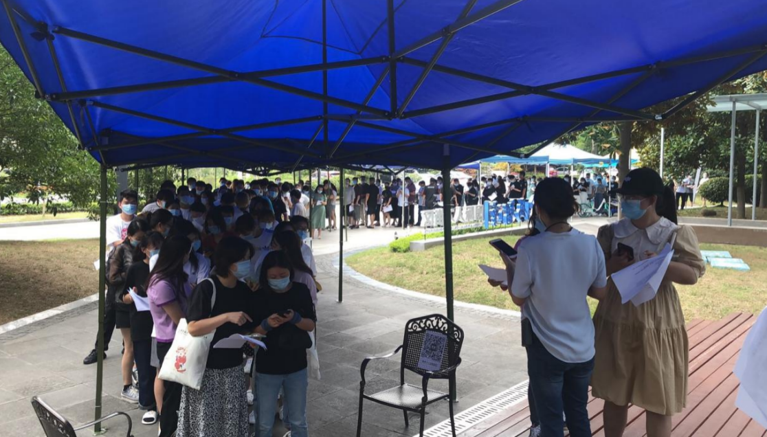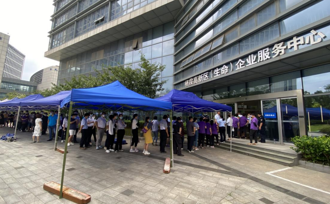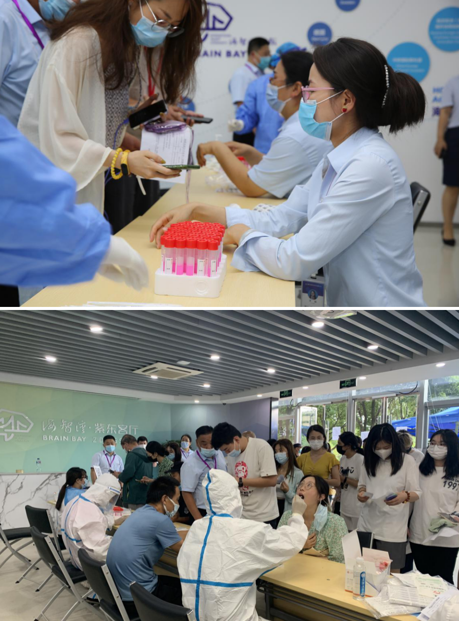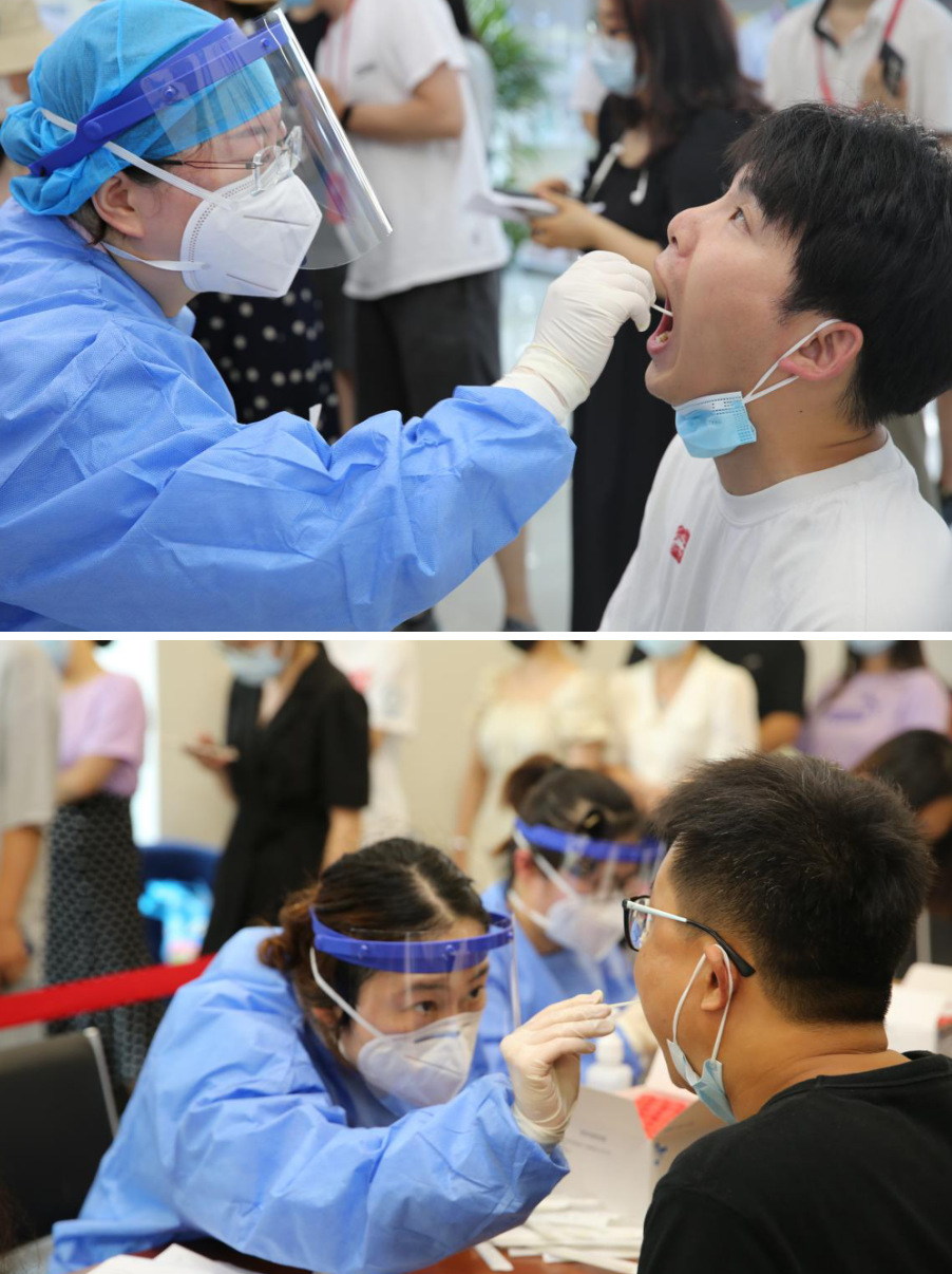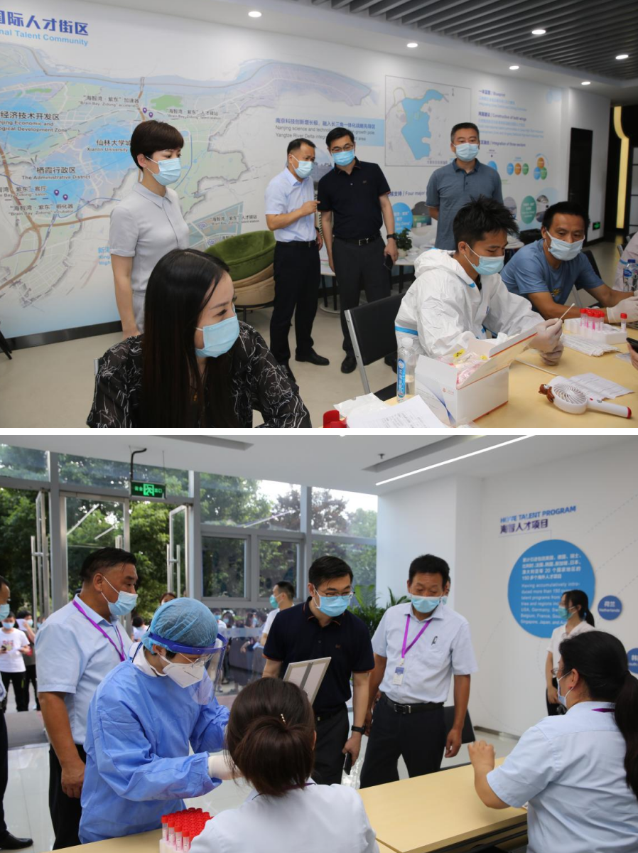 為切實落實新冠肺炎疫情防控工作“四早”要求,及時有效發(fā)現(xiàn)和控制傳染源,全面筑牢疫情防控防線,保證園區(qū)企業(yè)員工的生命安全。7月22日,為落實全市全員核酸檢測工作部署,棲霞高新區(qū)在區(qū)衛(wèi)健委大力關(guān)心下,協(xié)調(diào)、調(diào)度核酸檢測援助醫(yī)療隊,組織120余名網(wǎng)格員盡銳出戰(zhàn)、分秒必爭,聯(lián)合園區(qū)企業(yè)南京凱普醫(yī)學(xué)檢驗實驗室,在紫東國際創(chuàng)意園、江蘇生命科技創(chuàng)新園、金港科創(chuàng)園三個園區(qū)分別設(shè)置入園企業(yè)員工集中檢測點,高新區(qū)工委常務(wù)副書記黃斌帶領(lǐng)高新區(qū)領(lǐng)導(dǎo)班子,分別到各集中檢測點組織調(diào)度,現(xiàn)場解決問題。截至22日晚20點,高新區(qū)完成核酸采樣已達11600余人,零星來點人員還在繼續(xù)檢測中。