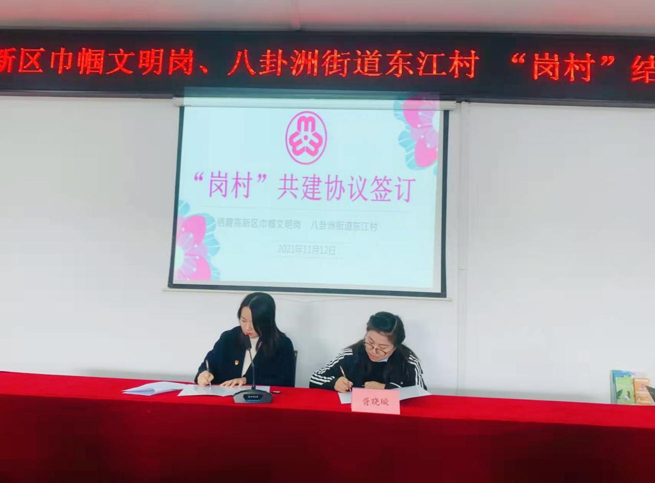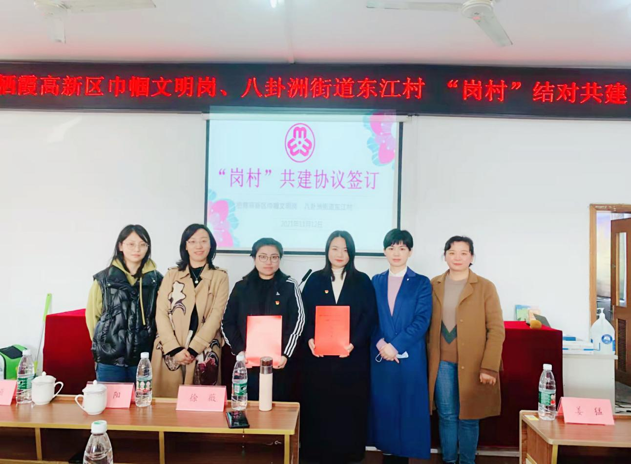 11月12日,棲霞高新區(qū)管委會副主任、婦聯(lián)主席徐薇,八卦洲街道工委副書記詹陽,八卦洲街道婦聯(lián)專職副主席宋穎出席了本次共建活動。棲霞高新區(qū)巾幗文明崗——科技招商部副部長陳建亞與八卦洲街道東江村黨委副書記胥曉璇,共同簽訂了崗村結(jié)對共建協(xié)議。