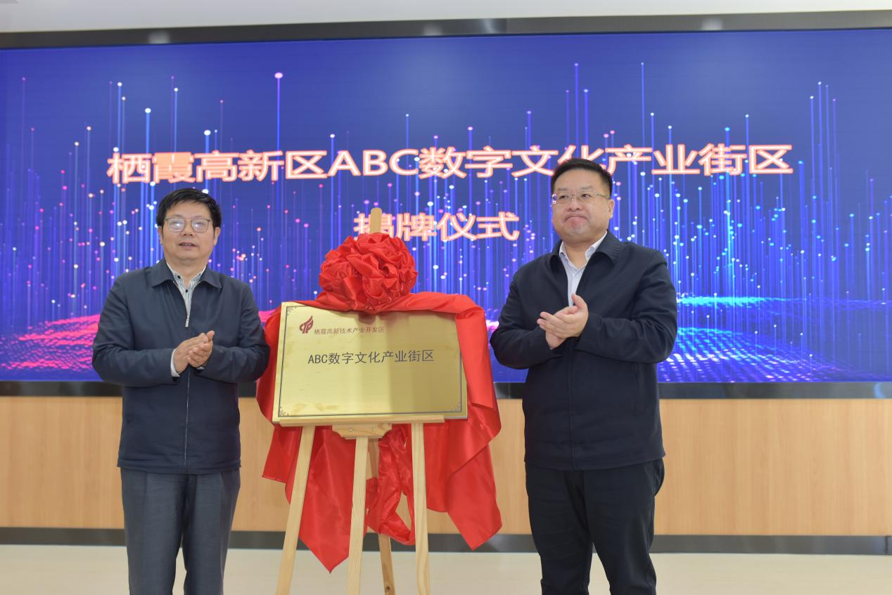 隨后,市委宣傳部常務副部長紀增龍,棲霞區(qū)委常委、宣傳部部長袁文峰共同為“ABC數字文化產業(yè)街區(qū)”揭牌。