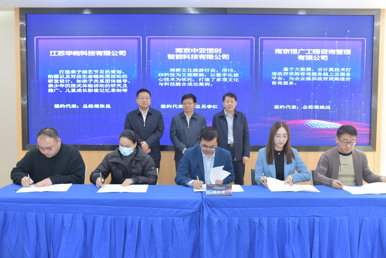 揭牌儀式后,棲霞高新區(qū)工委常務副書記黃斌、棲霞高新區(qū)ABC數字文化產業(yè)街區(qū)總經理王友雙,與首批簽約的15家總投資4.06億元的優(yōu)質文化企業(yè)代表,現(xiàn)場簽訂入駐協(xié)議。紀增龍、郭昌標、袁文峰等領導共同見證。