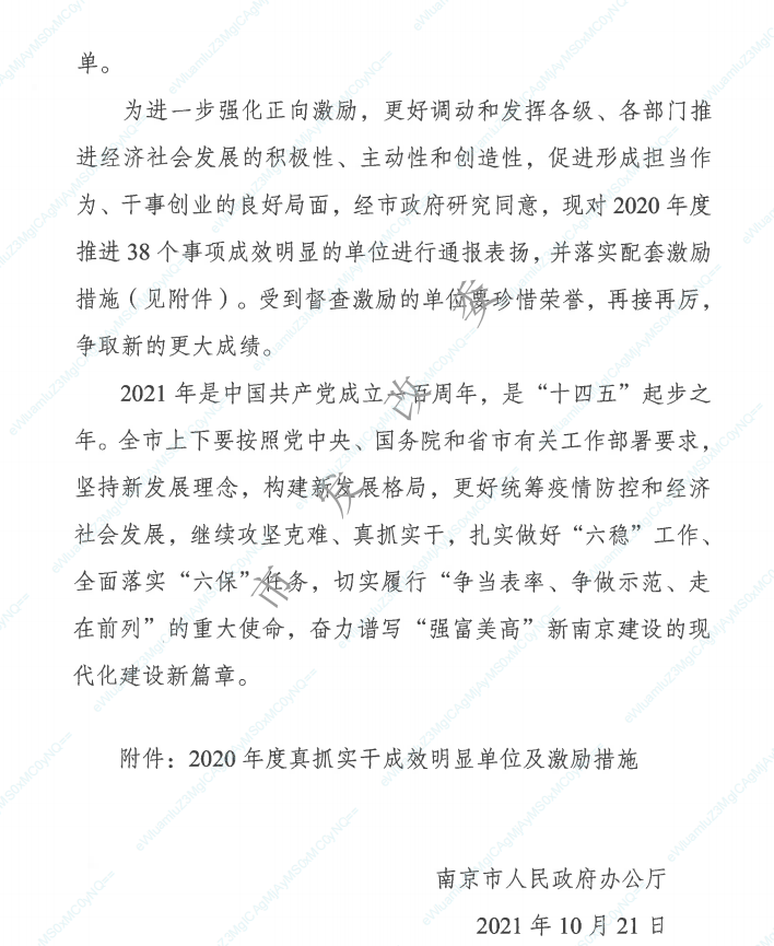 今年,南京市政府辦公廳發(fā)布了《關(guān)于對(duì)2020年度真抓實(shí)干成效明顯單位予以督查激勵(lì)的通報(bào)》,對(duì)2020年度推進(jìn)38個(gè)事項(xiàng)成效明顯的單位進(jìn)行通報(bào)表揚(yáng),并落實(shí)配套激勵(lì)措施,棲霞高新技術(shù)產(chǎn)業(yè)開發(fā)區(qū)省級(jí)雙創(chuàng)示范基地被列入成效明顯名單。