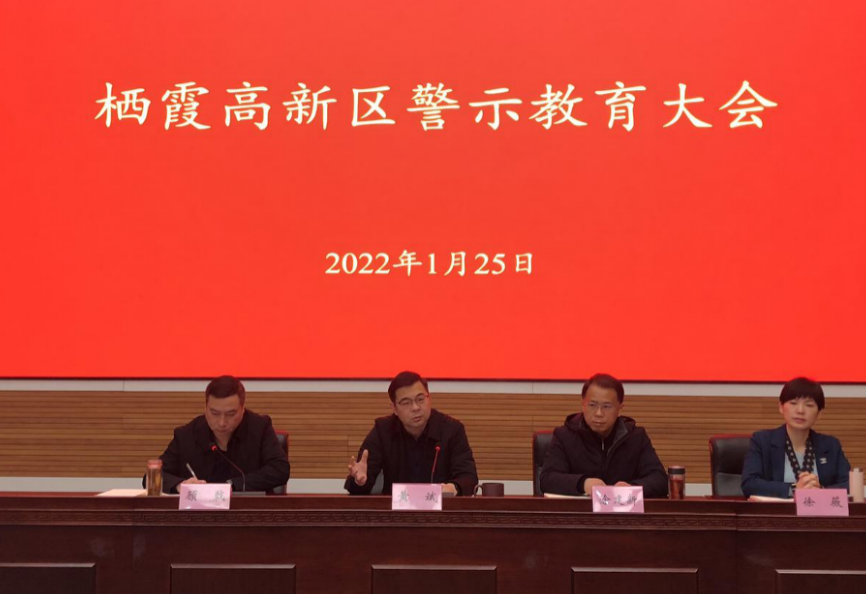 1月25日,棲霞高新區(qū)召開警示教育大會(huì),高新區(qū)領(lǐng)導(dǎo)班子,各部門、直屬公司全體中層干部,以及春節(jié)期間下沉社區(qū)值班同志參加會(huì)議。黨工委常務(wù)副書記黃斌講話,紀(jì)工委書記顧戟主持會(huì)議。