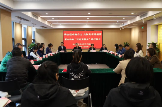 棲霞高新區(qū)管委會(huì)副主任劉云松與紫東物業(yè)黨支部書(shū)記、公司總經(jīng)理黃婷共同為紅色監(jiān)督員頒發(fā)聘書(shū)。