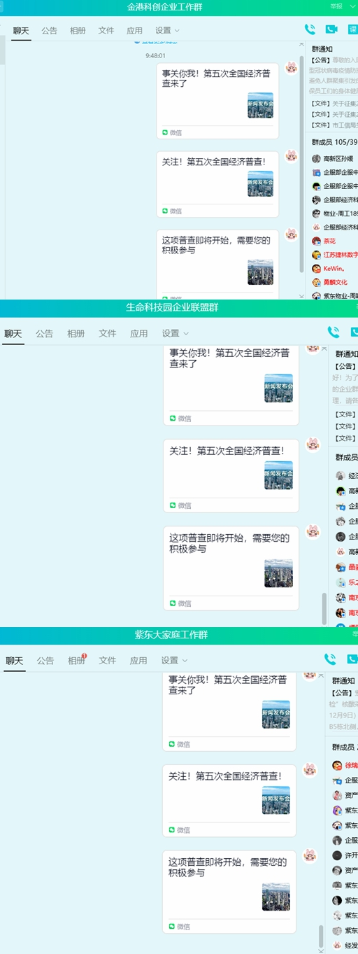 目前,第五次全國經(jīng)濟(jì)普查宣傳活動正在高新區(qū)如火如荼進(jìn)行中,在各個園區(qū)開展多種形式的宣傳動員,通過懸掛宣傳橫幅、園區(qū)樓宇電梯電子屏循環(huán)播放、易拉寶、QQ和微信企業(yè)群等,發(fā)揮宣傳力量,廣泛宣傳經(jīng)濟(jì)普查的目的、意義和作用,提高廣大群眾對經(jīng)濟(jì)普查的認(rèn)識,引導(dǎo)群眾積極支持配合普查工作,確保普查數(shù)據(jù)真實可信。