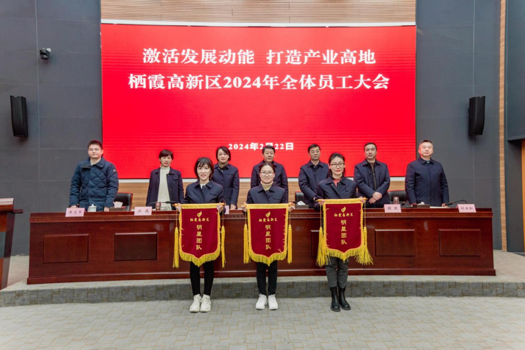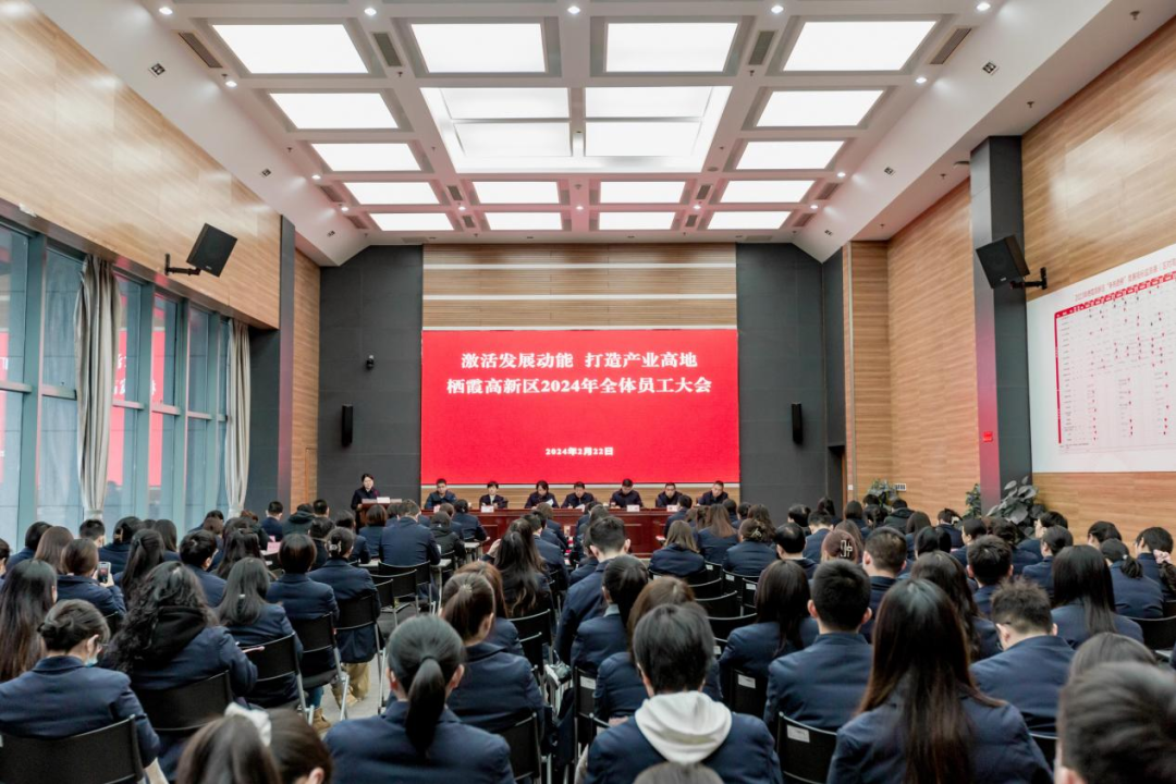 吹響號(hào)角勇爭(zhēng)先,奮力實(shí)干開新局。2月22日,棲霞高新區(qū)召開2024年全體員工大會(huì),回顧2023年工作成效,部署全年工作,總結(jié)經(jīng)驗(yàn),表?yè)P(yáng)先進(jìn),激勵(lì)干部職工對(duì)標(biāo)競(jìng)進(jìn)、比學(xué)趕超。區(qū)委常委、區(qū)政府常務(wù)副區(qū)長(zhǎng),棲霞高新區(qū)黨工委書記郭昌標(biāo),高新區(qū)部長(zhǎng)以上領(lǐng)導(dǎo)、各部門全體員工、子公司班子成員參加會(huì)議。黨工委常務(wù)副書記楊靜主持會(huì)議。