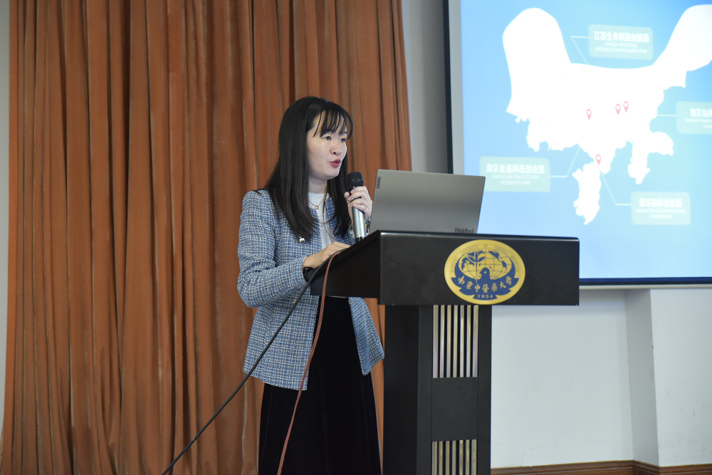 棲霞高新區(qū)項(xiàng)目開發(fā)科科長吳學(xué)琴推介了棲霞高新區(qū)創(chuàng)新創(chuàng)業(yè)環(huán)境,園區(qū)以國家級、省級、市級創(chuàng)業(yè)基地為大學(xué)生特色創(chuàng)業(yè)載體,搭建產(chǎn)融支持體系,為創(chuàng)業(yè)者提供一站式服務(wù)。