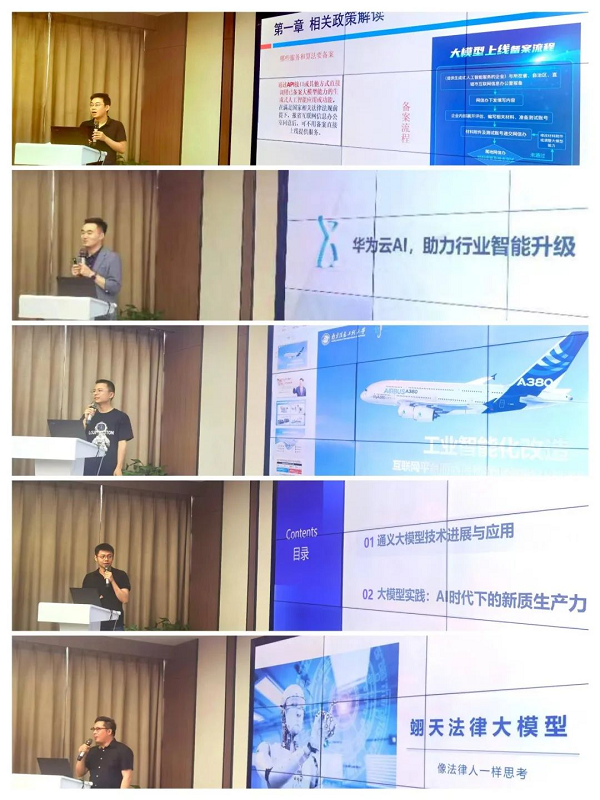專家分享中,國家計算機網(wǎng)絡(luò)與信息安全管理中心(江蘇)信息安全處副處長趙云分享了《大模型備案相關(guān)工作介紹》,詳細介紹大模型備案相關(guān)工作的最新進展和政策背景,幫助與會嘉賓更好地理解和應(yīng)對大模型發(fā)展的監(jiān)管要求;江蘇華為云副總經(jīng)理張燃分享《AI助力行業(yè)智能升級》,深入解析AI技術(shù)如何在各行各業(yè)中發(fā)揮關(guān)鍵作用,實現(xiàn)智能升級與變革;南京信息工程大學(xué)人工智能學(xué)院院長助理、副教授孫文赟分享《工業(yè)智能化改造:互聯(lián)網(wǎng)平臺助力質(zhì)檢領(lǐng)域智能化轉(zhuǎn)型》,展示互聯(lián)網(wǎng)平臺如何在質(zhì)檢領(lǐng)域?qū)崿F(xiàn)智能化改造,提升質(zhì)檢效率和準(zhǔn)確性;阿里巴巴集團釘釘解決方案架構(gòu)師王洋分享《阿里云人工智能大模型能力及實踐》,展示阿里云在人工智能大模型領(lǐng)域的最新技術(shù)能力和實際應(yīng)用案例,以及在大模型技術(shù)應(yīng)用中的經(jīng)驗和成果;圖靈微雀CEO強鋒分享《“翊天”法律大模型落地實踐》,展示人工智能在法律領(lǐng)域的巨大潛力和實際操作方法。