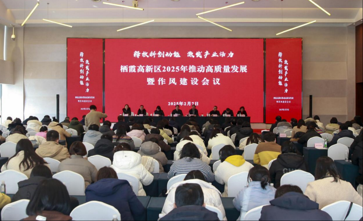 宏圖雖遠(yuǎn),奮進(jìn)則必達(dá);偉業(yè)雖巨,堅(jiān)守則必立。2月7日,棲霞高新區(qū)召開(kāi)2025年推動(dòng)高質(zhì)量發(fā)展暨作風(fēng)建設(shè)會(huì)議,傳達(dá)省、市、區(qū)“新春第一會(huì)”會(huì)議精神,回顧2024年工作成效,部署2025年工作。區(qū)委常委、區(qū)政府常務(wù)副區(qū)長(zhǎng),棲霞高新區(qū)黨工委書(shū)記郭昌標(biāo)出席并講話(huà)。管委會(huì)、高新集團(tuán)班子成員及全體員工,資產(chǎn)公司、紫東物業(yè)、紫東酒店中層以上人員參加會(huì)議。