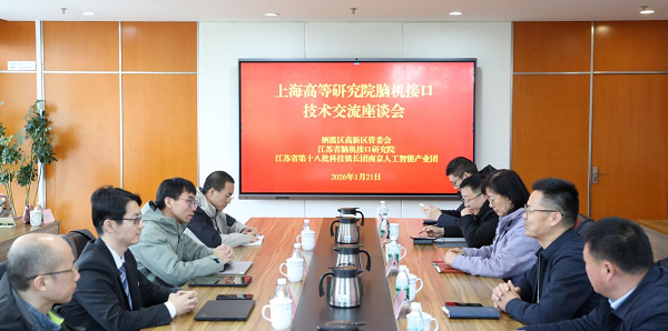 2026年1月21日,中科院上海高等研究院、智能信息中心書記、副主任徐天衡,國科欣腦(上海)智能科技有限公司董事長趙曦一行赴棲霞開展專題調(diào)研,深化蘇滬兩地腦機(jī)接口領(lǐng)域的技術(shù)合作與產(chǎn)業(yè)聯(lián)動(dòng),搭建產(chǎn)學(xué)研用協(xié)同創(chuàng)新平臺(tái)。南京經(jīng)濟(jì)技術(shù)開發(fā)區(qū)副主任鐘凱、江蘇腦機(jī)接口研究院副院長朱海華,區(qū)科技局、區(qū)高校合作發(fā)展局、棲霞高新區(qū)管委會(huì)、棲霞高新集團(tuán)、區(qū)科發(fā)集團(tuán)、智谷管辦、江蘇腦機(jī)接口研究院相關(guān)負(fù)責(zé)同志陪同考察。